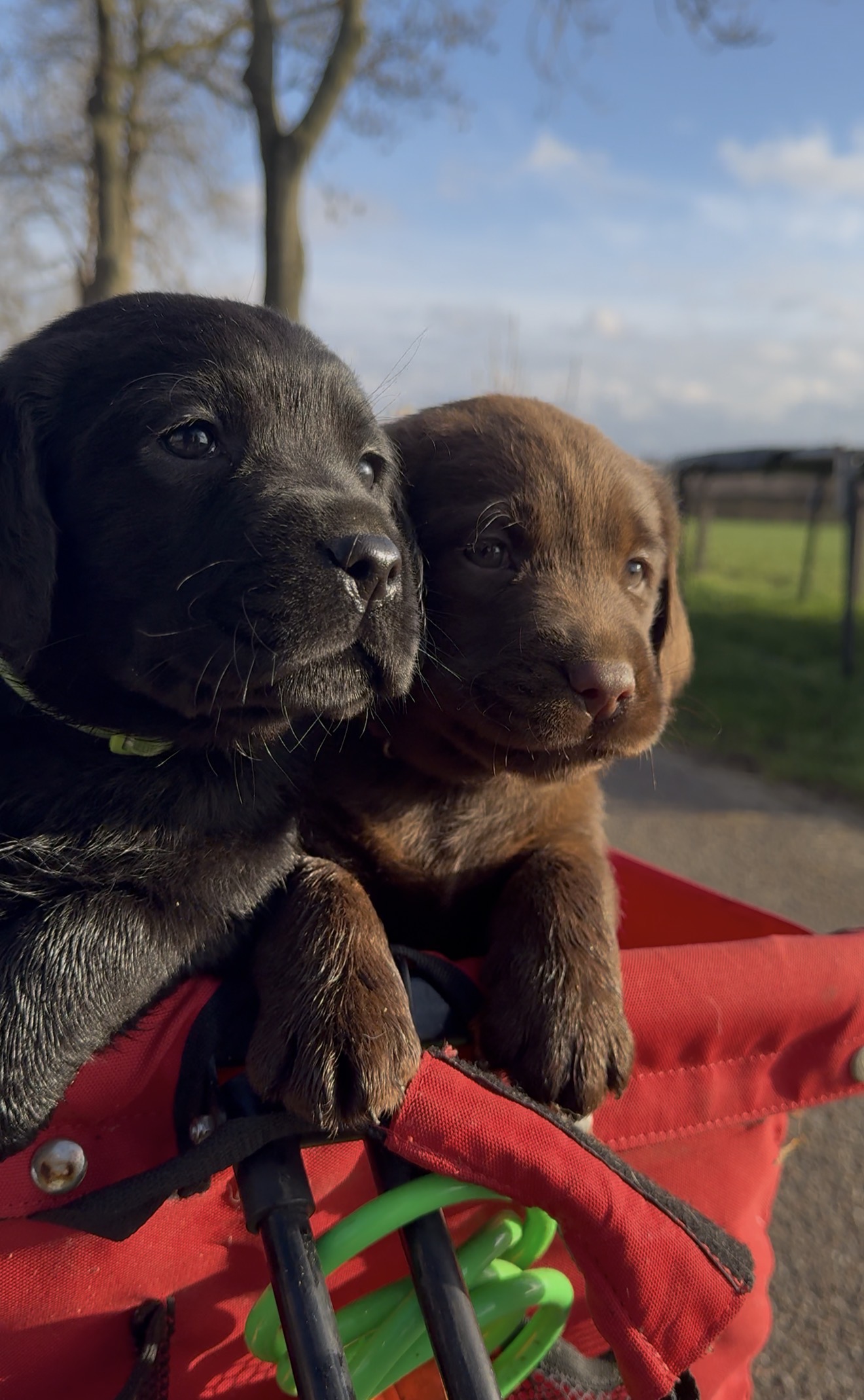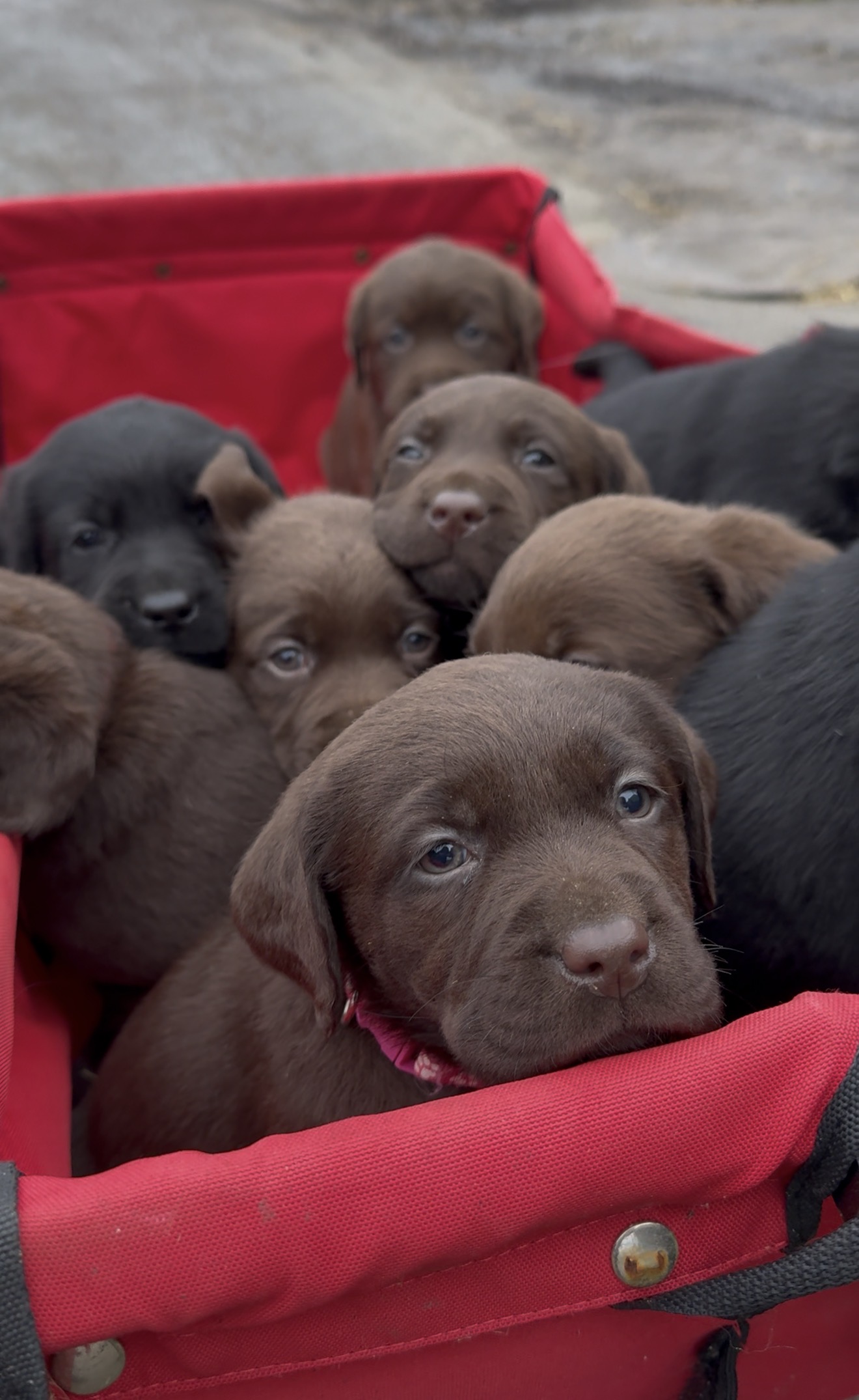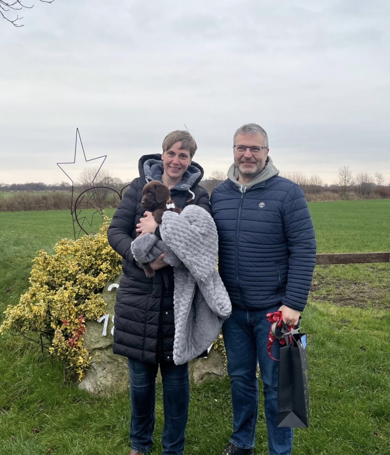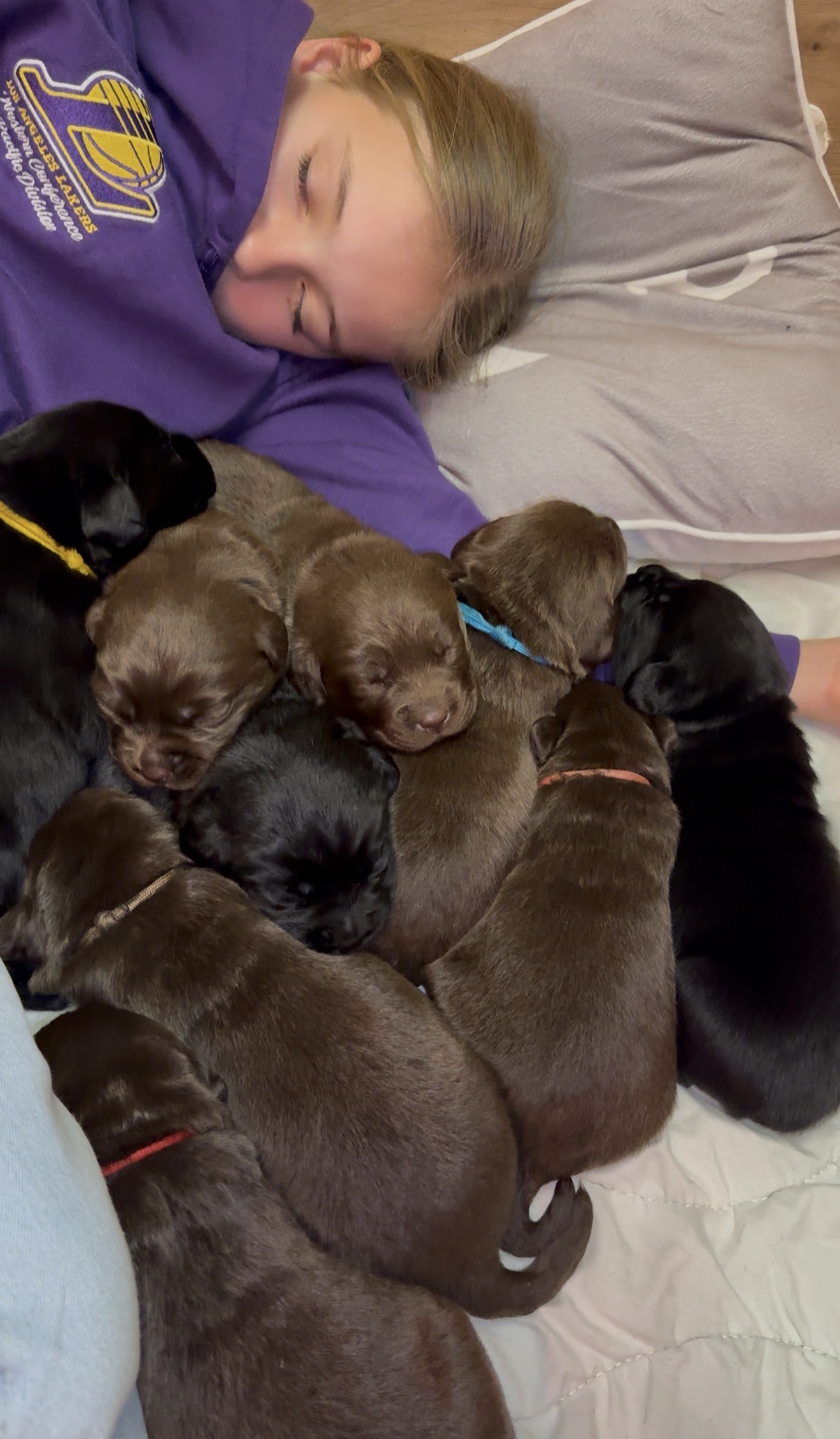 Am 18.10.2025 sind Zolas Welpen innerhalb von 8 Stunden zur Welt gekommen. Insgesamt sind Zola und Sam stolze Eltern von 9 Welpen geworden. Darunter 3 braune Hündinnen und 3 braune Rüden, sowie 3 schwarze Rüden. Zola ist eine liebevolle Mama.